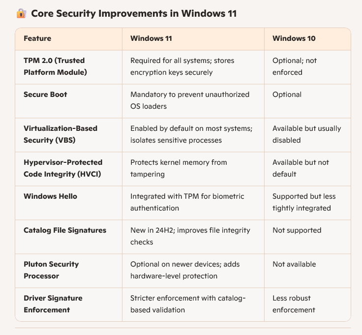 On August 8, 2025, in the California Superior Court, San Diego, Plaintiff, Lawrence Klein, filed a lawsuit against Microsoft for its discontinuation of free support, including security updates, for the Windows 10 operating system. In the First of Action, Plaintiff Klein alleges that Defendant Microsoft has engaged in unfair competition, false advertising, and violations of consumer protection laws related to Microsoft's decision to discontinue support for Windows 10. Plaintiff attorneys argue that by forcing Microsoft customers, whose current PCs are not Windows 11 compatible, to either purchase new PCs, or pay $30 for an additional year of security updates, puts Microsoft in violation of California’s Unfair Competition Law (“UCL”), California Business & Professions Code § 17200, among other offenses against California Consumer protection statutes. At ¶69, the Compliant states: Defendant violated the unfair prong of the UCL by, among other things, prematurely ending support for Windows 10 despite its continued widespread use and thereby rendering many older but still functioning devices obsolete and requiring many consumers to incur the cost of purchasing new devices, which benefits Microsoft. Worse, Microsoft recognizes that many users will be unable to upgrade before the end-of-support date in October 2025 and plans on continuing security updates but only to users who pay a fee, where it could simply continue providing such updates to all affected users. So one question relevant here does Microsoft guarantee the Windows 10 OS? Yes. But the warranty is only for 90 days. As stated in the Microsoft License terms stated below: If you acquired the software from a retailer, Microsoft warrants that the software will perform substantially as described in any Microsoft materials that accompany the software for a period of 90 days from the date you acquired it. Intrinsically, Windows 10, or any software on the market, is a product, not unlike any other type of manufactured product. It is common practice for manufacturers to offer extended warranties past the time of the original product warranty. Much like buying an extended warranty for a car after the factory coverage expires, Microsoft’s Extended Security Updates offer users a way to prolong protection beyond the original support window. Plaintiff argues this monetizes basic security, but it’s not unlike what consumers already accept in other industries. Plaintiff does not, however, recognize that there are production costs to the creation and distribution of needed security updates. For instance, a Consumer may purchase an extended warranty for an automobile to ensure the brakes always function properly. So, it is common practice in many industries to offer extended protection against product failure for a reasonable fee. In the case of Windows 10, for consumers there is a fee of $30 for an additional year of security patches. Central to Plaintiff's case is that many enterprise users of Windows 10 will neither upgrade their current PCs. Neither will they pay any additional fees for extended security patches. These enterprise customers PCs often have stored on them critical information regarding their businesses and customers. And, as all computers users should now know, without security patches to fix vulnerabilities in software, any unpatched machine is liable to have the data stored on those machines stolen by cyber criminals. Here my real world experience in the field offers some practical experience on how users deal with issues of computer security. Either they do; or they don't. Users who are aware of the many ways they; their machines; and the data stored on their machines, are under constant threat from cyber attacks, put in a great deal of effort in keeping their machines as up to date as possible. Security conscious users understand that they will need to replace their machines every 4 to 5 years. These users have a backup plan and implement those procedures on a regular basis. I work with small businesses. Each of those entities have already upgraded to Windows 11. Moreover, simply patching Windows 10 will not make the older OS as secure as is Windows 11 out of the box. As the chart below generated by the Copilot AI shows, both the hardware and the software of Windows 11 and compatible machines offers far greater security than does Windows 10 hardware and software. The first two items in the chart, TPM 2.0 and Secure Boot, for example, are features that are enabled by default on newer motherboards. No patching of the operating system will offer those newer security features that are hardware related.