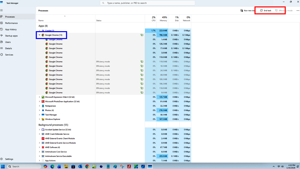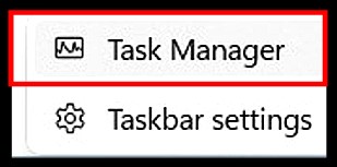 time you’ve finished reading the "Your PC is Infected" So, rather than click on the Close X or the cancel button, use Task Manager to close the popup screen without ever touching the screen itself. To call up Task Manager, simply right click on a blank spot on the taskbar. Two options will be presented as shown at the right here. Click on the option at the top, Task Manager. Before you proceed, save any files on which you may have been working. I also recommend backing up your files to an external drive. Task Manager opens to the Processes tab. At the top of the list of processes, will be those non-system applications that are running: i.e. your apps. It is likely that at any point in time more than one instance of a browser is running depending on how many webpages are open at the time. For instance, you might see both Chrome, Edge, or any other browser apps that are open. There is, however, no way to tell which of these browser sessions is the actual scareware screen. Therefore, please understand that when you close the browser using Task Manager all the browser session will close, and any data not saved to disk will be gone along with the scareware. To close open browser sessions, click one time to select that browser that appears at the top of the list of the open browser sessions you want to close. Then, click "End Task". The End Task button is located in the top right corner of the Task Manager screen. All instances of that open browser will be gone.